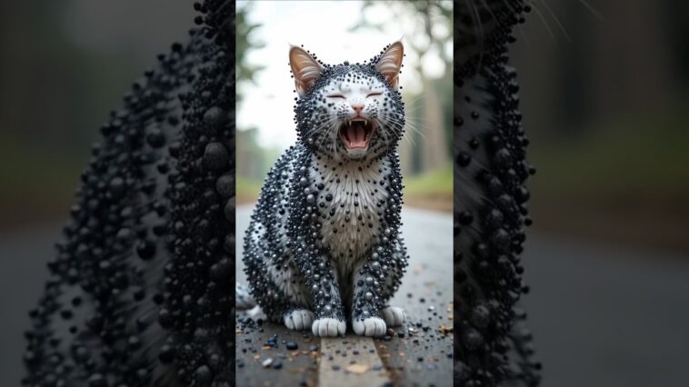 A cat is covered with black beed, rescued by team#cat #ai #animalrescue