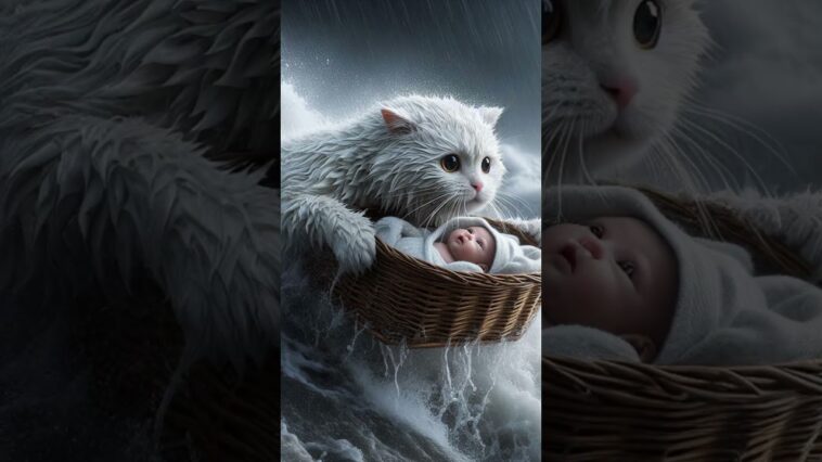 A white cat saves a baby adrift from a great flood 😺🍼#cat #baby