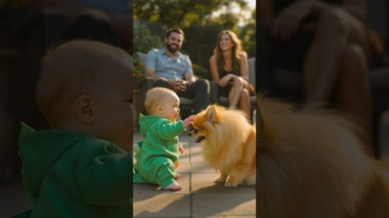 Baby Chats With a Fluffy Pomeranian—CUTEST Conversation Ever! 🧸💛 #shorts #dogs #usa