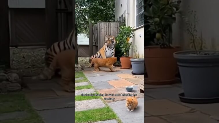 Brave Orange Cat vs Big Tiger#tiger #cat