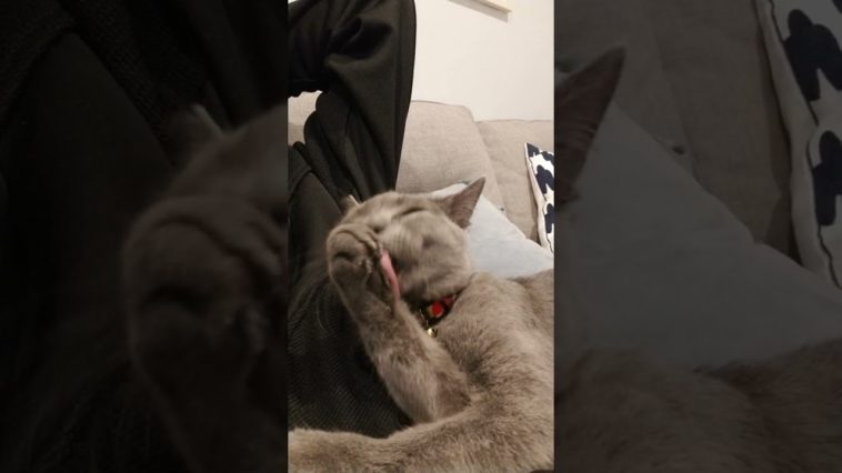 Bubbles the cat cleaning his paws. Russian Blue. chat gato Кот חתול Katze 貓 kucing قط Please subs