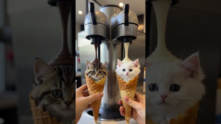What if your ice cream wasn’t just dessert… but a surprise full of cuteness? Watch as two adorable tiny kittens magically pop …