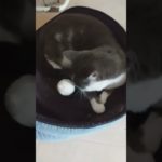 Chat qui reçois sa balle pour jouer dans son panier/ Cat try to play with his ball