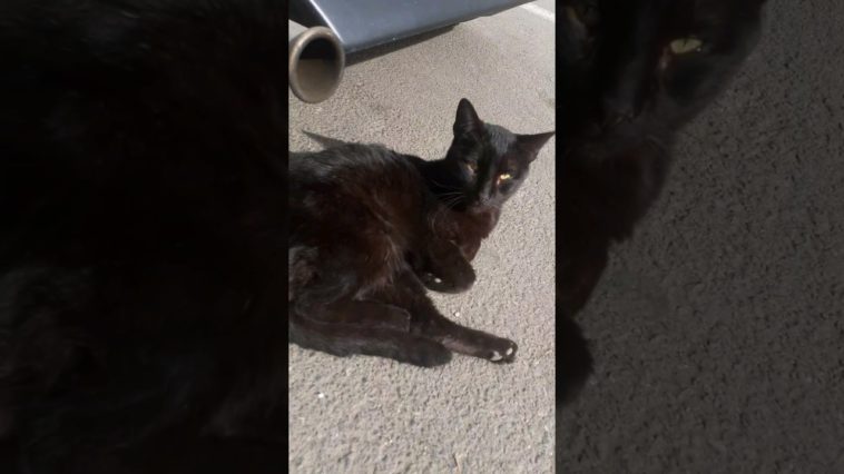 Regard Mystérieux d’un chat erRant noir aSsis près d’une vOiture 🏎