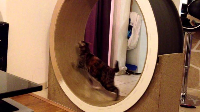 Une petite roue de hamster pour chats fait maison.