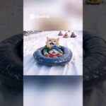 ❄️Orange Cat Scully Takes Kitten Edgar Snow Tubing (Sometimes You Need Push)!😻🧣