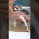 The kitten who have lot of fleas tried to turn off the faucet in her first bath #shorts